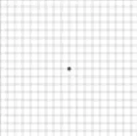 Altération de la vision centrale (une tache noire ou blanche apparaît au centre de la grille)