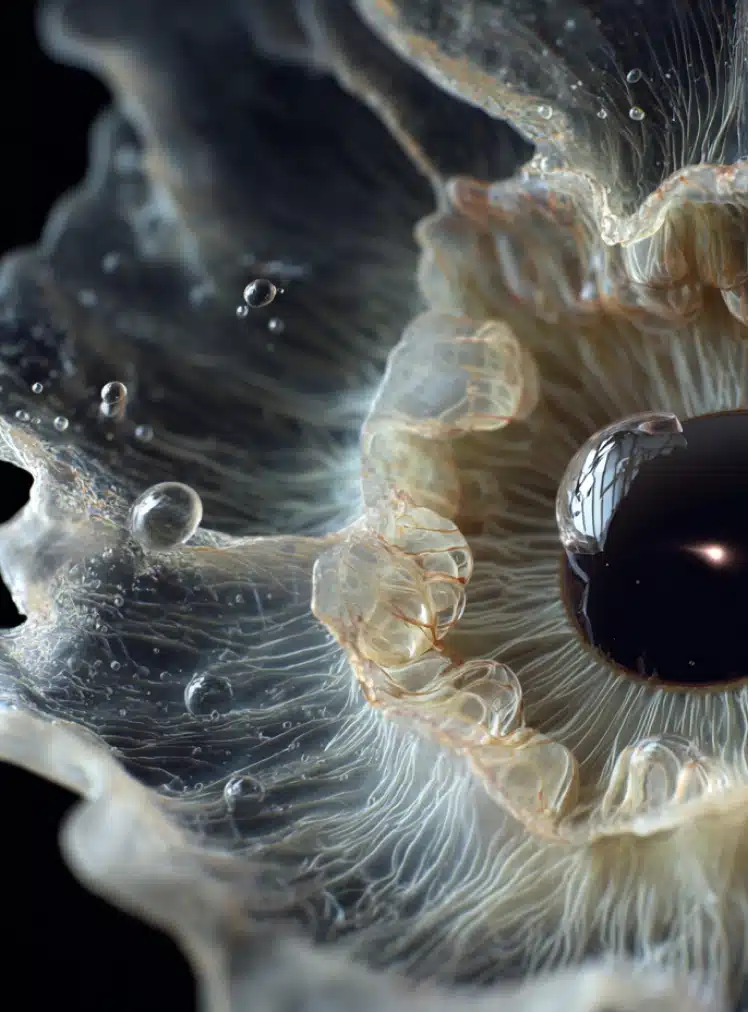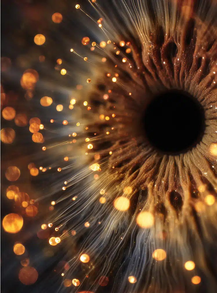 Le vitré, quant à lui, est un gel translucide qui remplit l’intérieur de l’œil, derrière le cristallin. Il maintient la forme du globe oculaire et laisse passer la lumière jusqu’à la rétine.